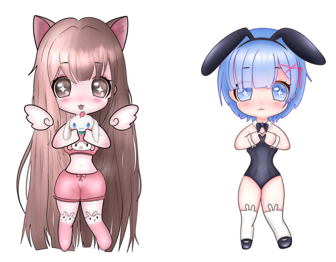 ❥ Any other detailed background will increase the price from 5€ - 10€ depending on complexity❥ NOTE: I also offer the Chibis below in form of a YCH for 45€ !!